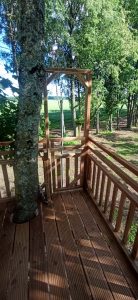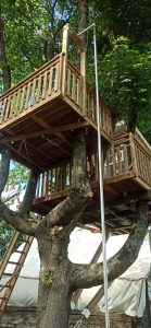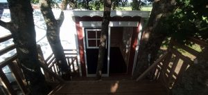 Ant unikalaus vieno klevo su daug šakų įkomponuotas namelis vaikams su papildoma aukštesne platforma – terasa. Namelio aukštis 3,5-4 m virš žemės. Sudarytos dvi skirtingų aukščių platformos, ant vienos iš jų padėtas namelis, ant kitos apžvalgos aikštelė ir nusileidimo (gaisrininko) vamzdis. Užlipimas kopėčiomis (dėl aukščio ir saugumo). Namelyje sudėti langai su stiklo paketais. Namelyje apšiltintas tik stogas, kad saulė neprikaitintų. Ant namelio stogo naudojamos papildomos apdailos. Namelis dažytas.